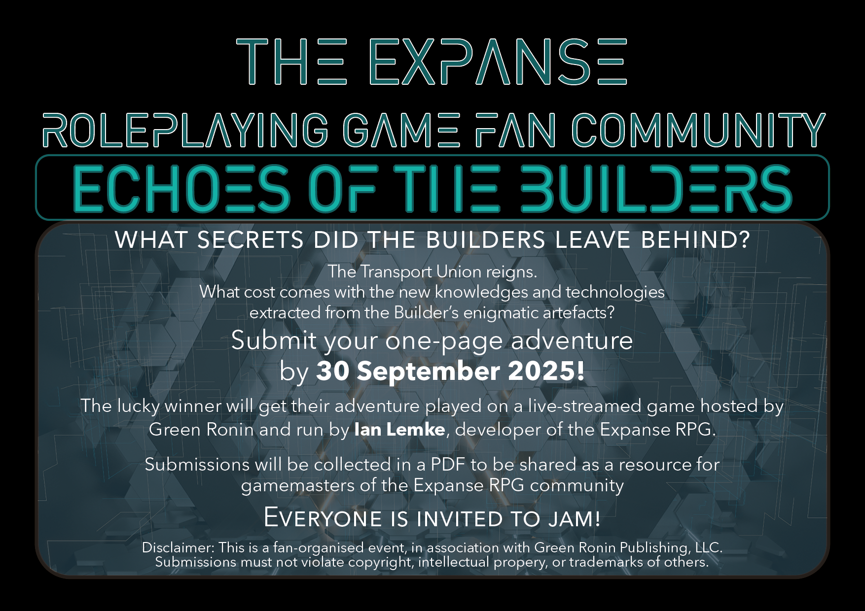 - By entering the competition, i.e., submitting a one-page adventure, you agree to abide by the judges’ (the Facebook Expanse RPG community moderator team) decision to determine the winner.